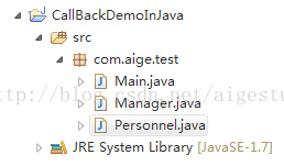 然后再新建三个类:Manager(该类用来模拟总经理)、Personnel(该类用来模拟员工)、Main(主类);