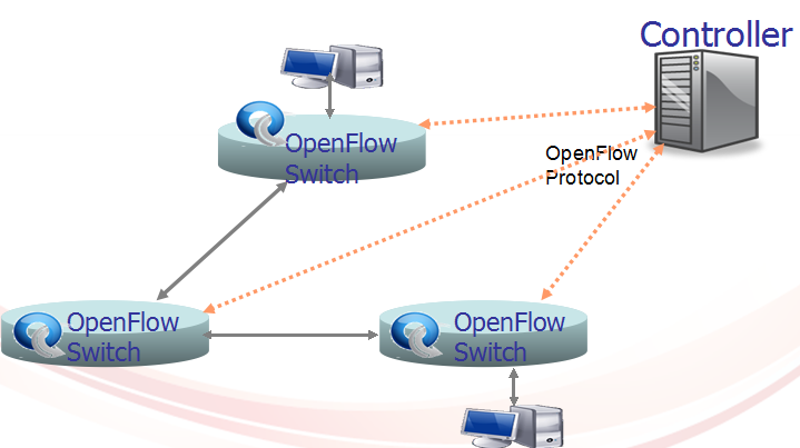 通俗的讲,OpenFlow是使用类似于API进程配置网络交换机的协议。OpenFlow的思路很简单,网络设备维护一个FlowTable并且只按照FlowTable进行转发,FlowTable本身的生成、维护、下发完全由外置的Controller来实现,注意这里的FlowTable并非是指IP五元组,事实上OpenFlow 1.0定义了包括端口号、VLAN、L2/L3/L4信息的10个关键字,但是每个字段都是可以通配的,网络的运营商可以决定使用何种粒度的流,比如运营商只需要根据目的IP进行路由,那么流表中就可以只有目的IP字段是有效的,其它全为通配。
