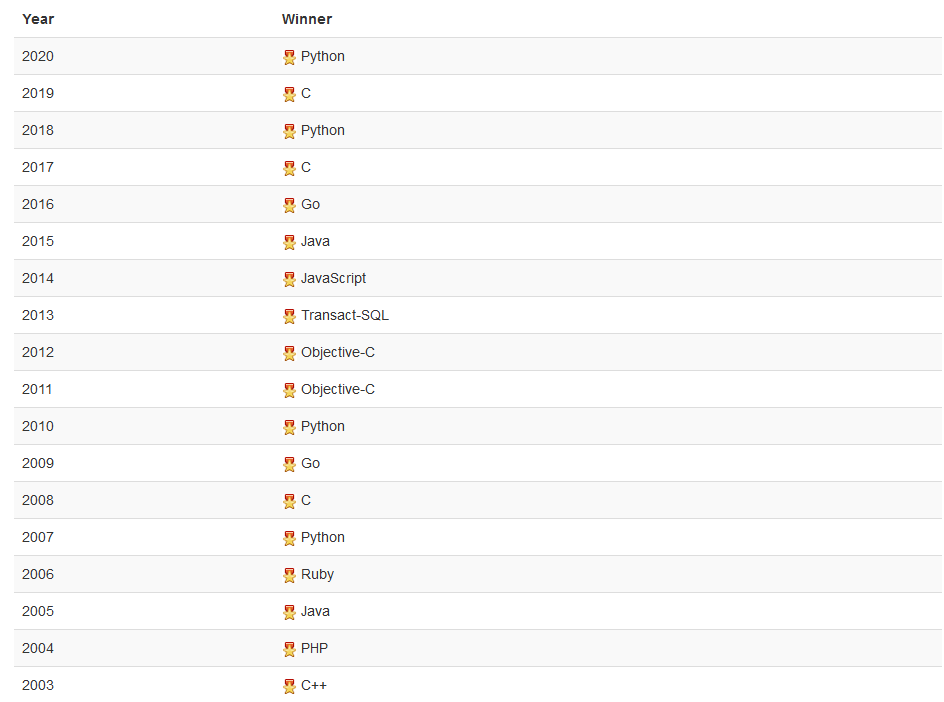 虽然与前两个月相比,Python 的排名从第 2 变为第 3,但本月榜单的前三名相差甚小:第一名的 C 与第三名的 Python 仅相差 0.67%。这前所未有的微小差距彰显了 C、Java 与 Python 之间争夺第一愈发激烈的战况。而哪种编程语言将最终赢得这场战争?考虑到 Python 近年来在蓬勃发展的数据挖掘和人工智能领域的市场领导地位,TIOBE 官方预测:继 C 和 Java 之后,Python 很大可能将成为第三个登顶 TIOBE 榜单的编程语言。
