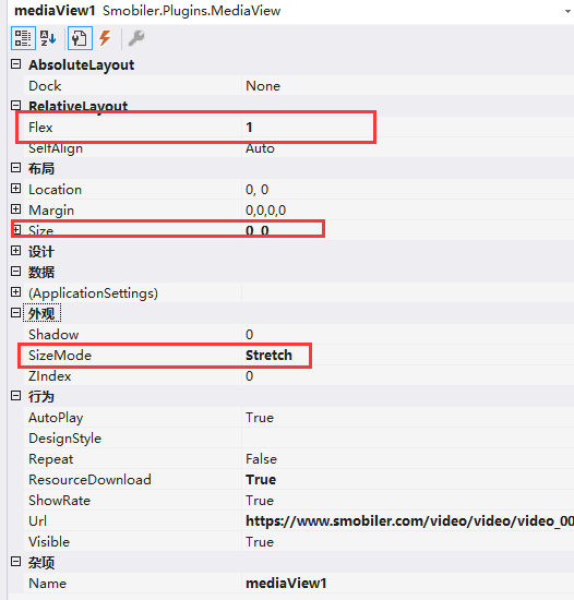 Step 1. 新建一个SmobilerForm窗体,再拖入MediaView,MediaView.Size设置(300,225),布局如下