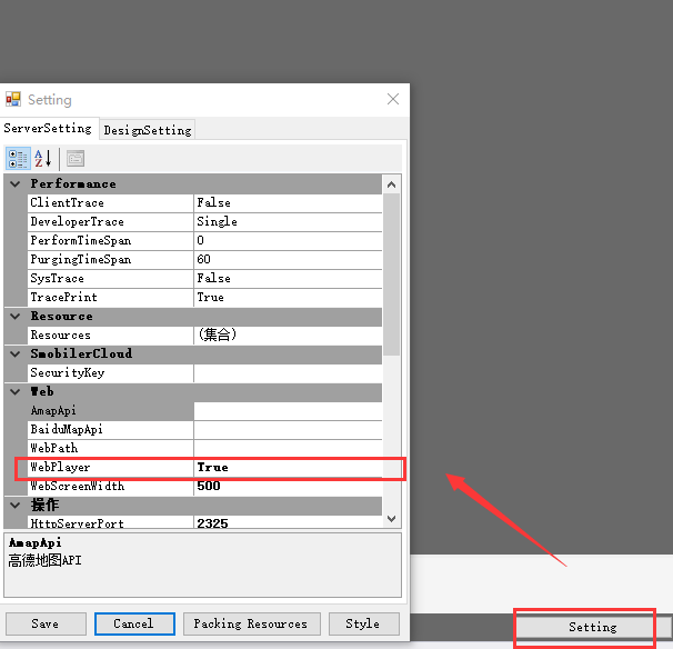 1.若是需要web版中也能播放视频,在设计器右下角点击Setting,设置WebPlayer为true