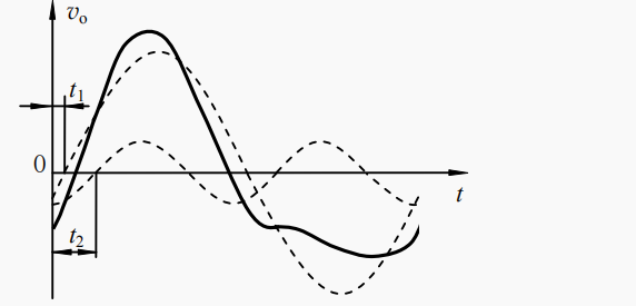 如果基波分量和二次谐波分量经放大电路产生不同的时延,则复合波形出现失真。