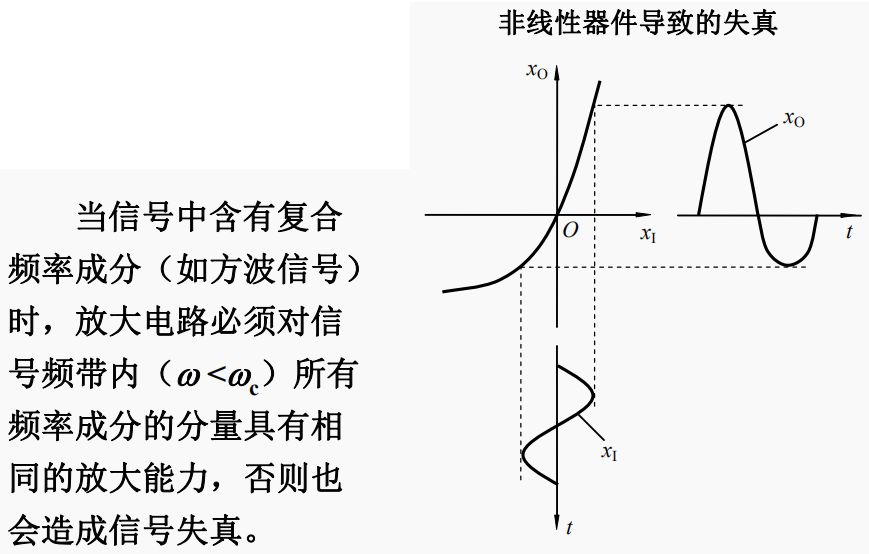 变化,即放大电路输出的信号,除了幅值增大外,应是输入信号的重现。输出波形的任何变形,都意味着产生了失真。实现信号线性放大的条件是:在输入信号幅值范围内,放大电路增益 A 是常数;在输入信号频带范围内,放大电路增益 A保持不变,时延相同,即放大电路的带宽要与信号的频带相匹配。