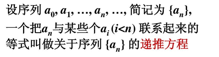 (2)递推方程的求解:给定关于序列的递推方程和初值,求出第 n 个项的通项公式的过程。