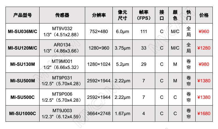 分辨率、快门、帧率、色彩、靶面、接口