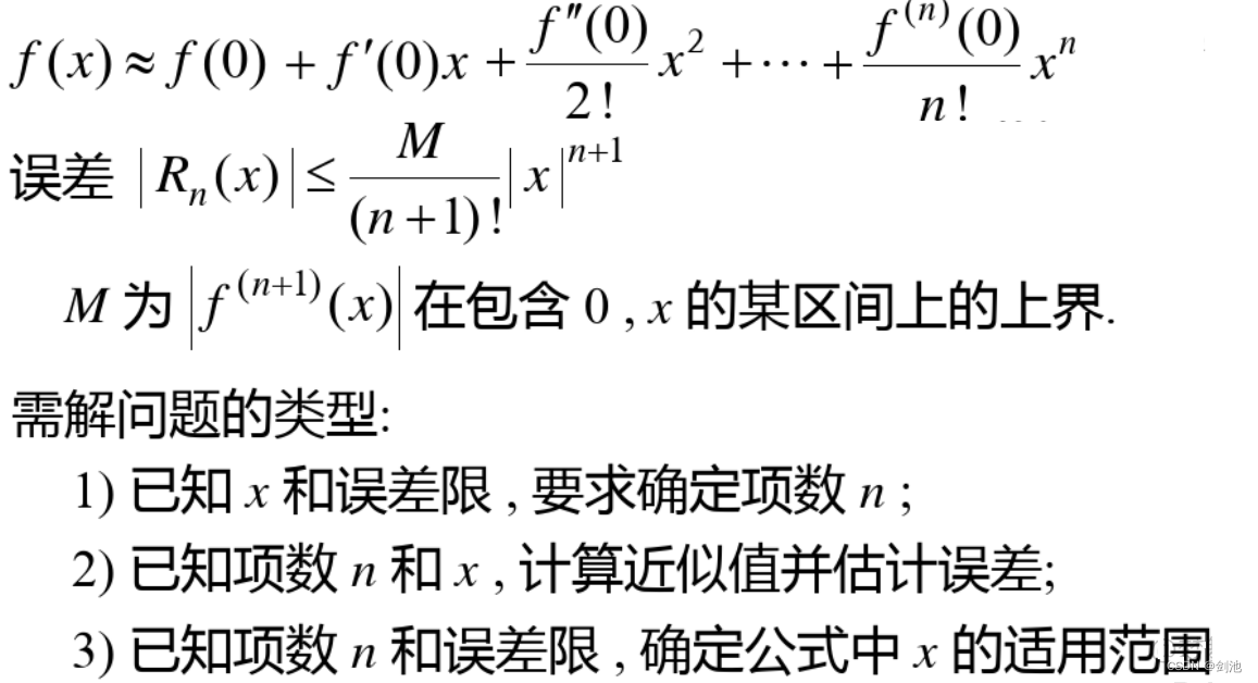 泰勒公式中,如果 ,则是麦克劳林公式: