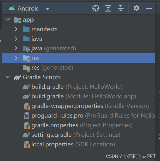 App项目下面有两个分类:app(代表app模块)、Gradle Scripts。