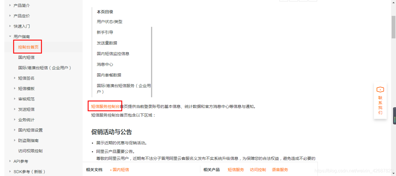 调用接口需要哪些东西,文档里都有,然后去对应的地方找到就好了,其中“短信服务控制台”由此进: