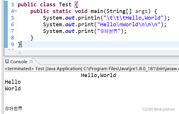 println(""); | 单行输出字符之后换行 | 一个输出单行字符之后并且换行的方法,用于控制台显示字符的作用 |