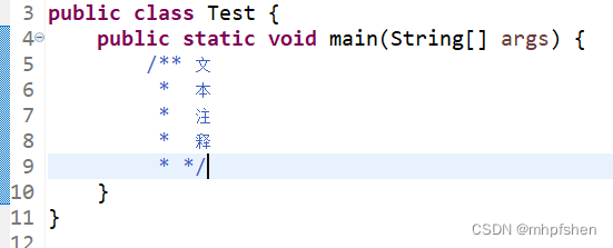 文本注释:/** 注释内容 */ | 注释多条的内容,用于鼠标悬浮类或者方法提示作用 |