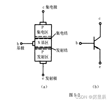 (1)结构:三极管有两个PN结(集电结、发射结)、三个区(集电区、基区、发射区)、三个电极(集电极、基极、发射极)组成。如图所示: