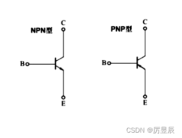 (2)类型与符号:如图所示,分为PNP型和NPN型两类。发射极箭头方向表示发射结正偏时电流的方向。