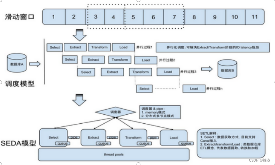 - select模块获取到数据后,将其传递给后续的ETL模型。 这里E和T模块会是一个并行处理