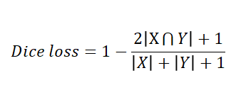 为了防止分母预测为0,会在分子和分母上加上一个平滑系数,公式如下。需要注意的是,一般预测值会经过sigmoid或softmax计算概率,是不存在输出为0的情况,但为了防止输出值过小的情况。