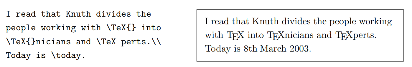 LaTex 会忽略命令(command)后面的空格。如果你希望在命令后面得到一空格,可以 在命令后面加上 {} 和一个空格,或者加上一个特殊的空白距离命令。{ } 将 阻止LaTex吞噬掉命令后面的空格。如下: