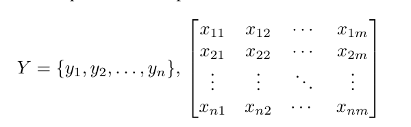 Y=\{y_1, y_2, \ldots, y_n\},\\