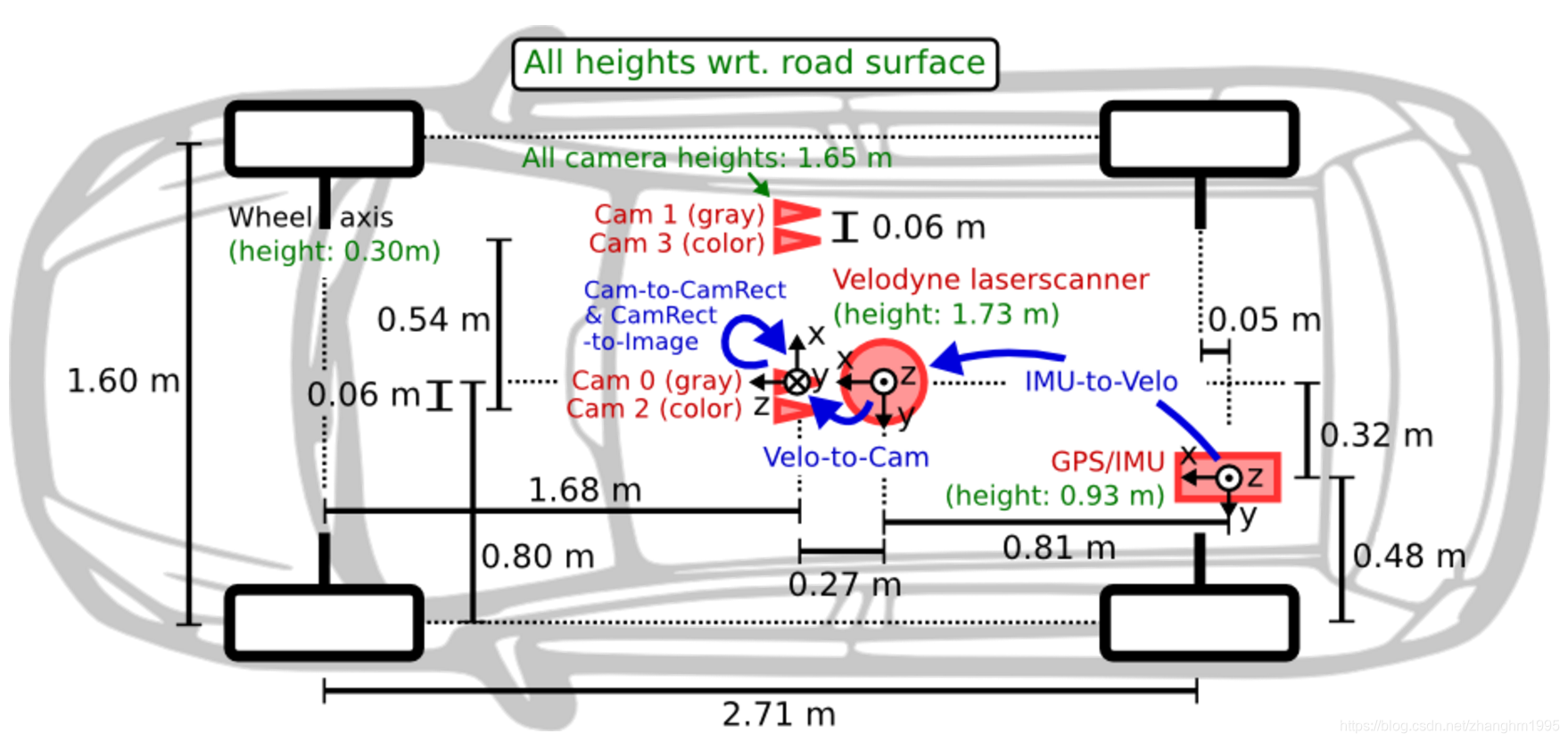 从图1和图2中可以看到不同传感器的坐标系定义(上下左右以驾驶员为基准):