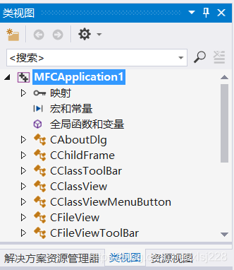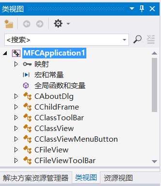 - 所有使用MFC类的名称都已C开始,如CView。