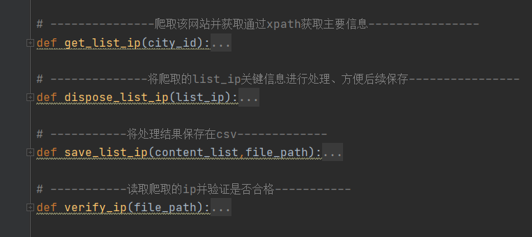 city_num = int(input("需要爬取几个城市ip")) # 1~34之间,该网站只有34个城市页面for i in range(city_num): # 批量爬取list_ip关键信息并保存response = get_list_ip(i)print(response)