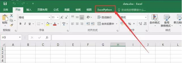 2.新建一个Excel文件,打开可在标签栏显示 ExcelPython标签