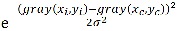 其中gray(xi,yi)为当前点灰度值,gray(xc,yc)为中心点灰度值,sigma为值域标准差 .