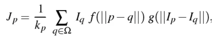 g 为the range filter kernel,图像中心的像素值为Ip.