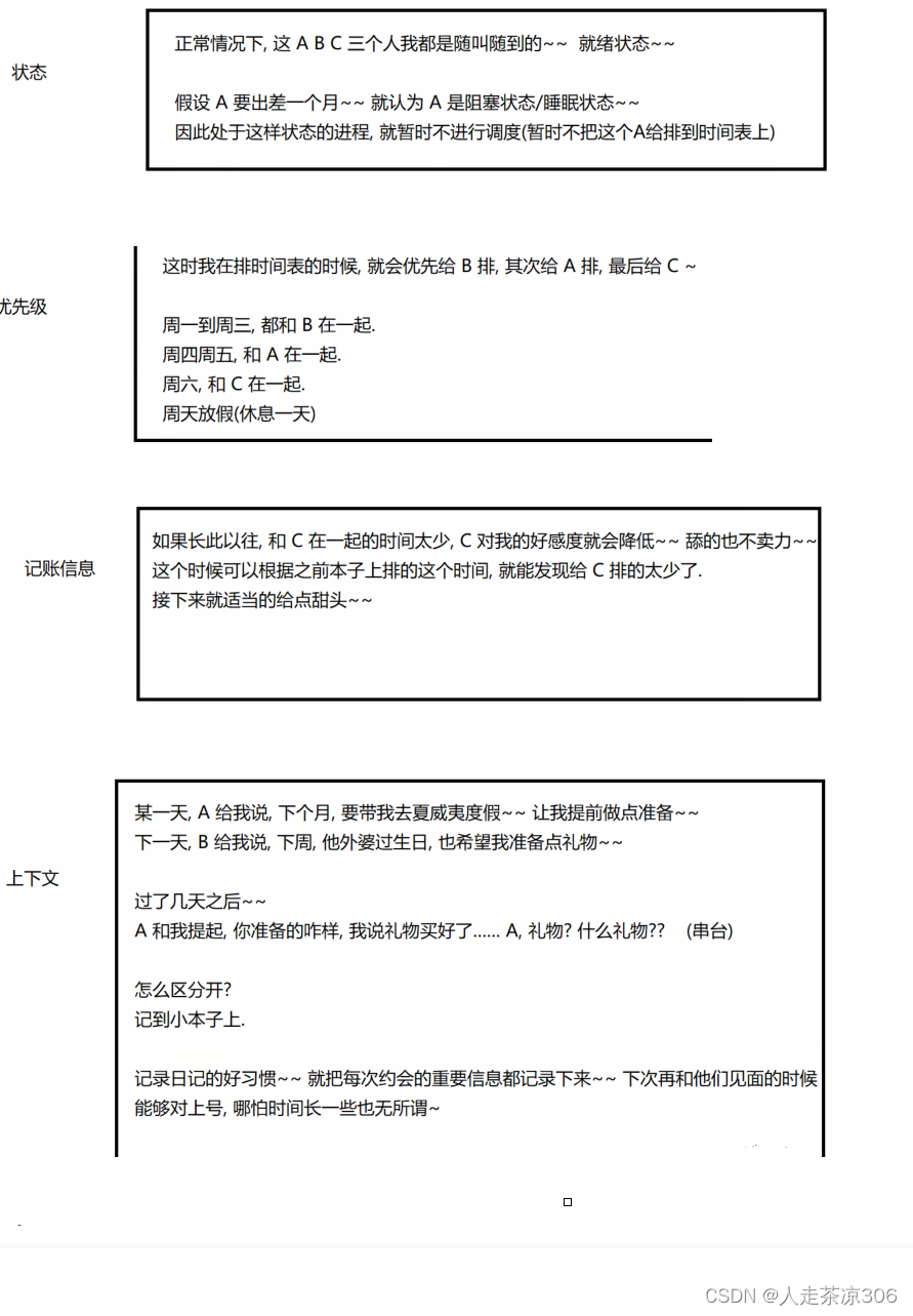 用通俗的话来将就是:一个系统同一时间执行了很多任务,这件事就是“进程调度”(进程调度就是操作系统在考虑CPU资源如何给各个进程分配)