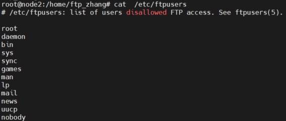 sudo vi /etc/ftpusers # 其中的用户不允许用于访问ftp