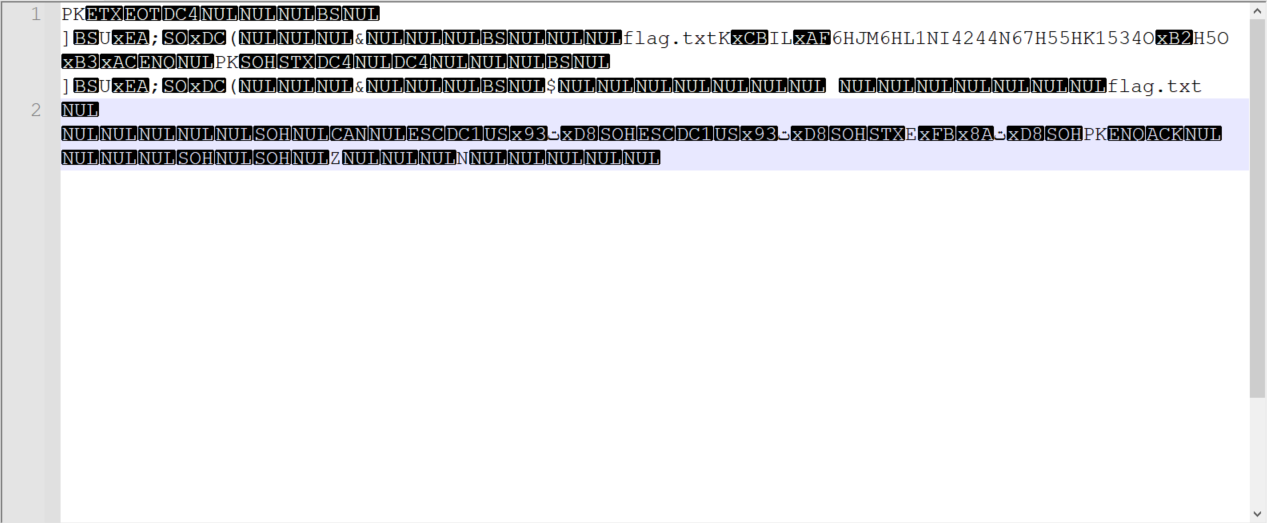 看见zip文件头PK,保存文件,退出,改后缀为zip,解压文件拿到flag