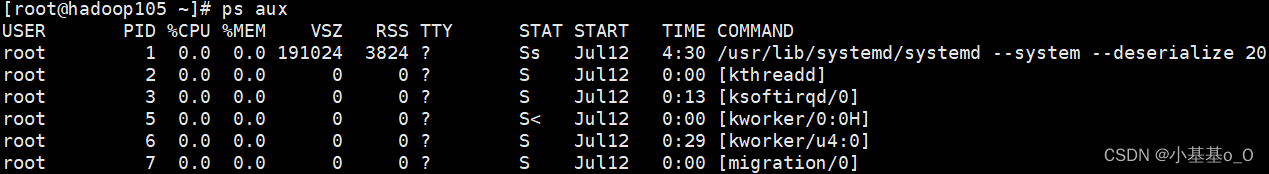 S | 进程状态 D:uninterruptible sleep R:running S:sleeping T:stopped by job control signal t:stopped by debugger during trace Z:zombie | Process Status |