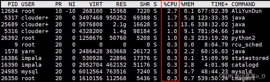 %CPU | 进程占用CPU的百分比 | CPU Usage |