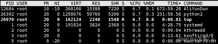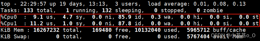 0.0 wa | IO-wait | 等待输入/输出的进程 CPU使用率 | time waiting for I/O completion |