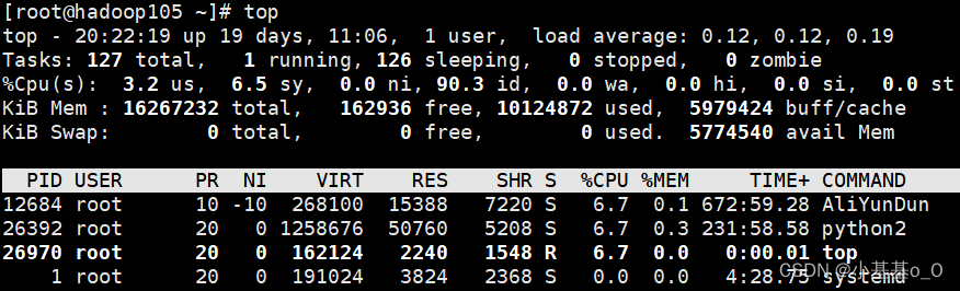 up 19 days, 11:06 | 系统的运行时间(本机己运行19天+) |