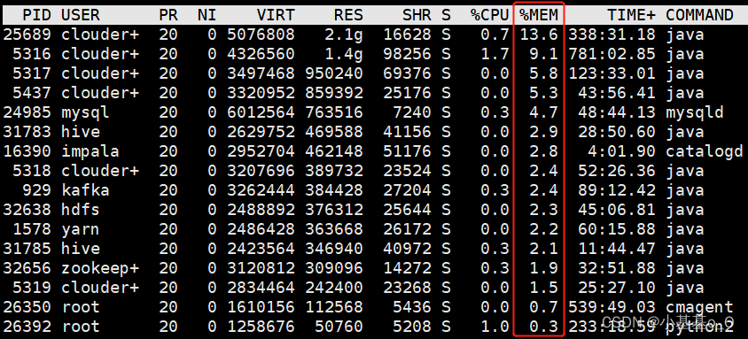 %MEM | 进程占用内存的百分比 | Memory Usage (RES) |