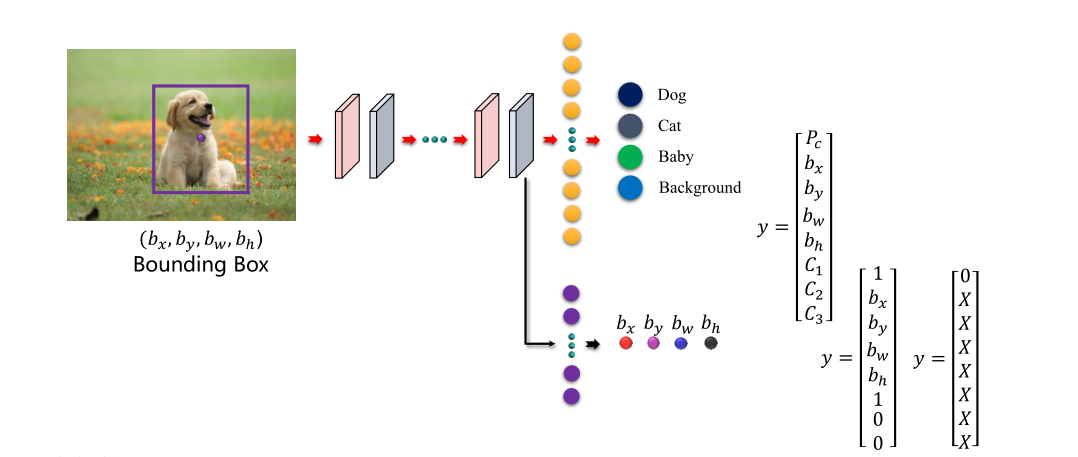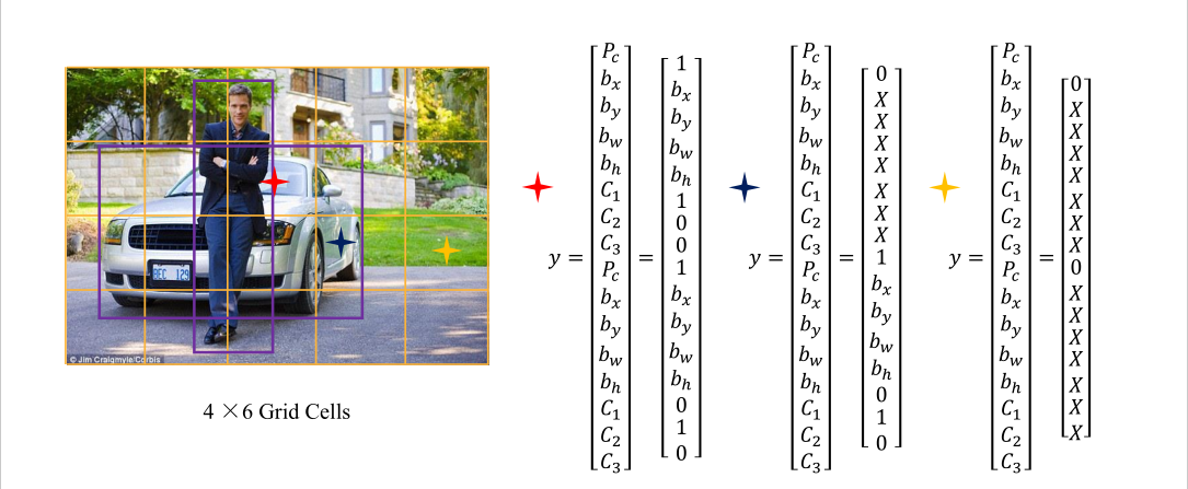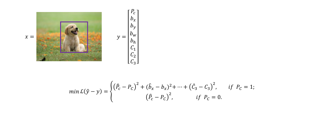 y代表输出,是8x1向量。pc=1它是某类,下面为它的坐标,pc=0是前景目标,不需要坐标。