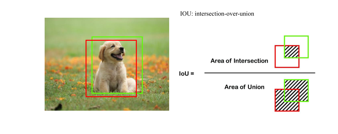 绿色框真实框,红色框预测框,分子是重合的,分母全部面积。