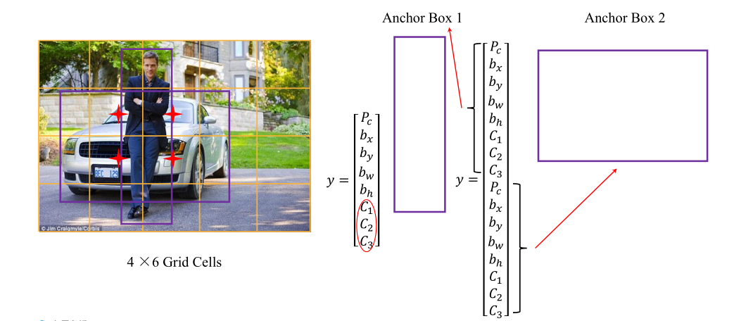 位置表示,x,y中心点坐标,w宽度,h高度,就可以得到矩形框的范围。(先找中心点再得到矩形框)