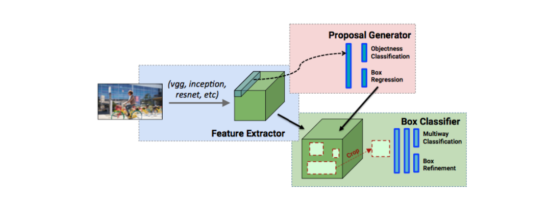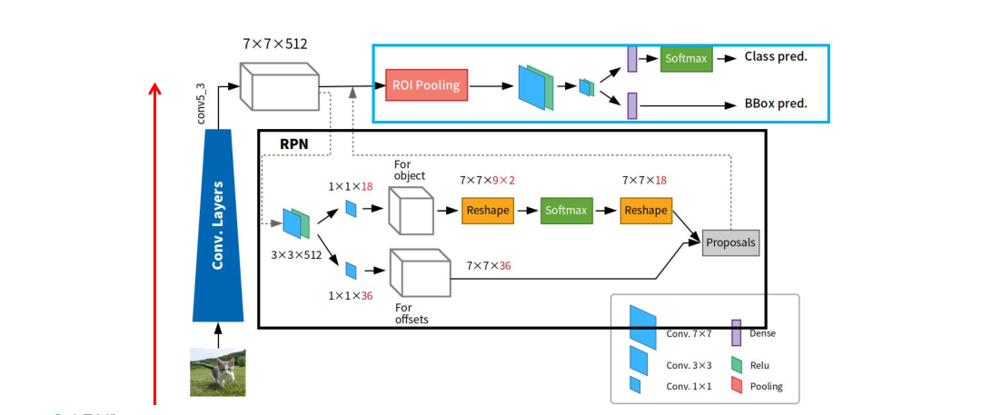 可以采取任何主流的CNN网络作为骨干网络,两个分支,上分支寻找候选区域,有目标,下分支预测