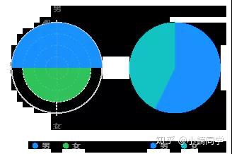 通过堆叠,玫瑰图可以展示大量的数据。对于类别过少的数据,则显得格格不入。比如下图中展示一个班级男女同学的个数,这种场景建议使用饼图。