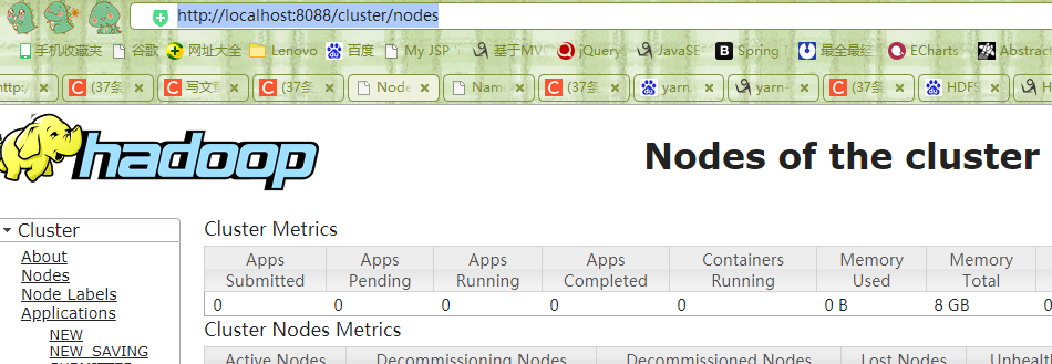 在浏览器地址栏中输入:http://localhost:8088查看集群状态 。(或者用http://IP:8088)