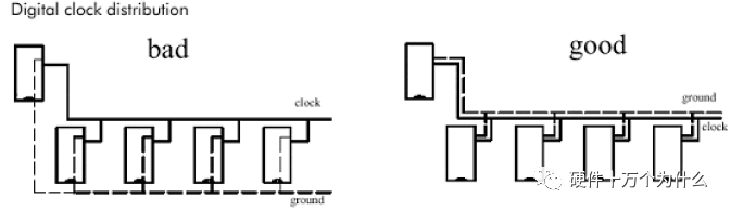 环路最小规则,即信号线与其回路构成的环面积要尽可能小,环面积越小,对外的辐射越少,接收外界的干扰也越小。