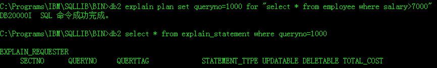 explain plan set queryno = 1000 for "select * from employee where salary>70000" //为一条SQL语句创建访问计划