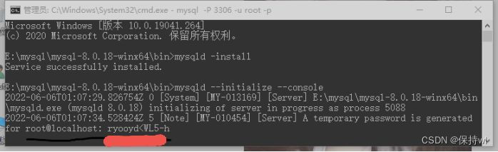 然后再输入mysqld --initialize --console指令初始化MySQL