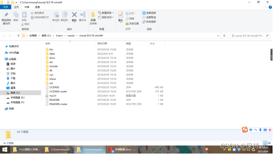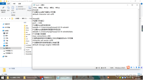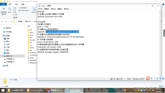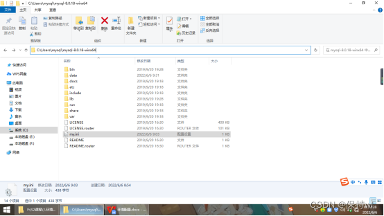 然后将图中my.ini文件复制进mysql-8.0.18-winx64 文件夹里,如图所示