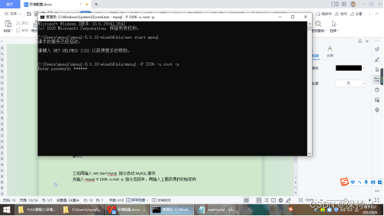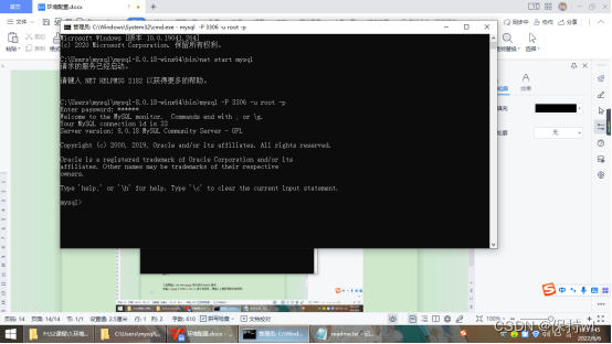 先输入mysql -P 3306 -u root -p 指令后回车,再输入上面获得的初始密码