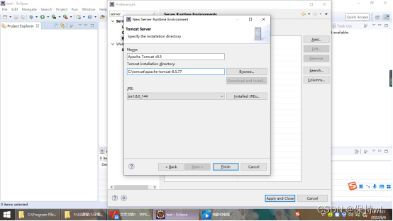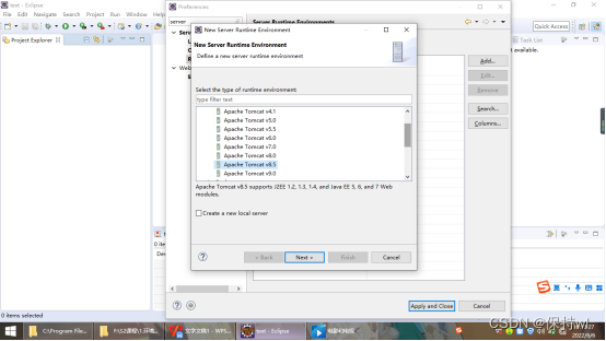 然后点击apaqi再选中之前安装的tomcat的版本,此处我的是8.5的