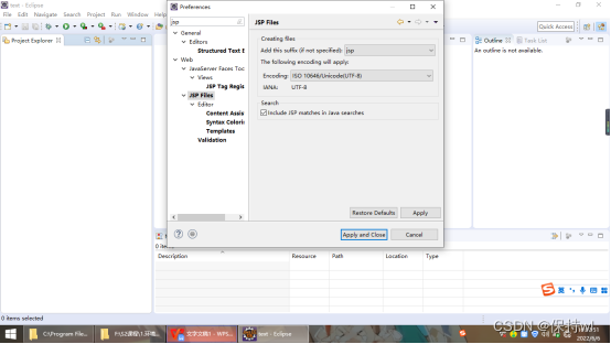 搜索框搜索jsp ,点击jsp files,将Encoding改为UTF-8,再点击Apply