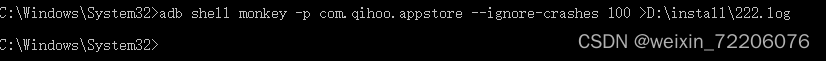 monkey -p 包名 -s 23 --throttle 2000 --ignore-crashes --ignore-timeouts -v -v -v 100000>/data/local/tmp/log.txt