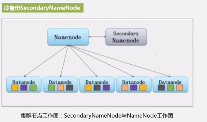 冷备份:一旦namenode出了问题,需要一个过程,secondarynamenode才起作用