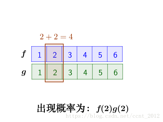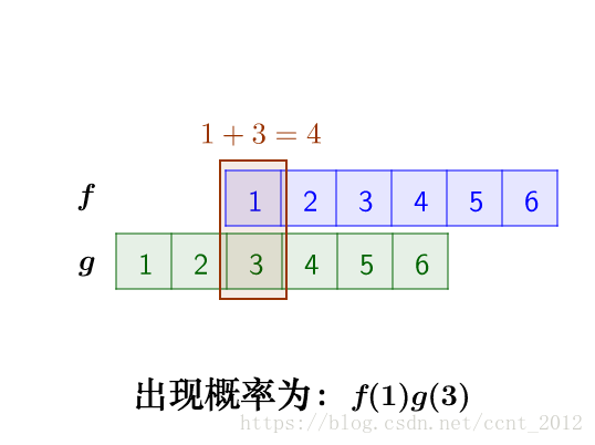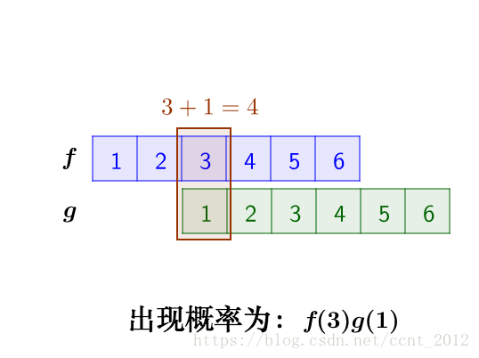 这里问题的关键是,两个骰子加起来要等于4,这正是卷积的应用场景。